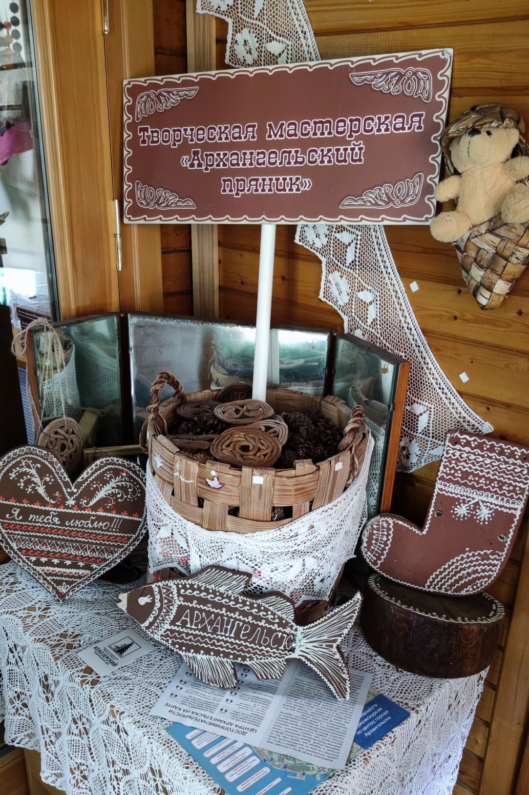 - Текстиль и кружево — работы местных мастериц с поморским орнаментом.