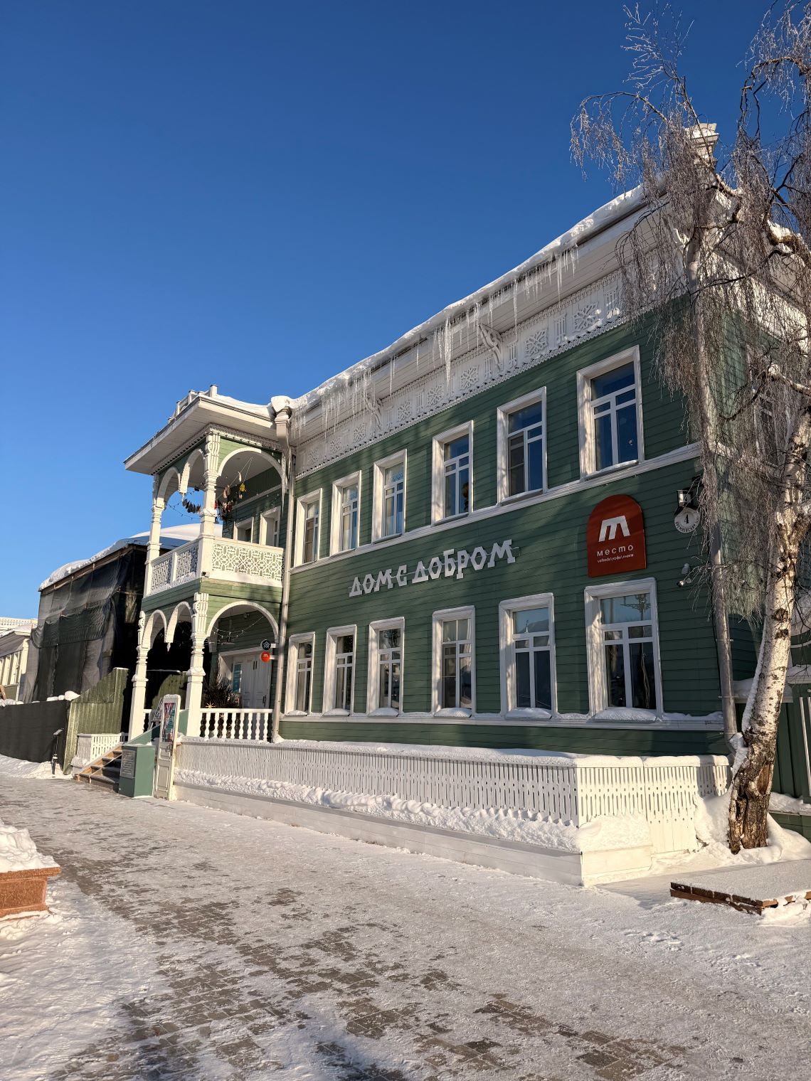 Рядом на площади уникальный музей с интересной концепцией — Дом с добром, расположенный в отреставрированном деревянном особняке. В музее можно своими глазами увидеть, как жили вологжане (именно так правильно называть жителей) в разные эпохи — от петровских времен до советского времени. И даже посмотреть об истории Вологодчины фильм в камерном кинотеатре. Многие экспонаты на радость детям можно трогать руками.