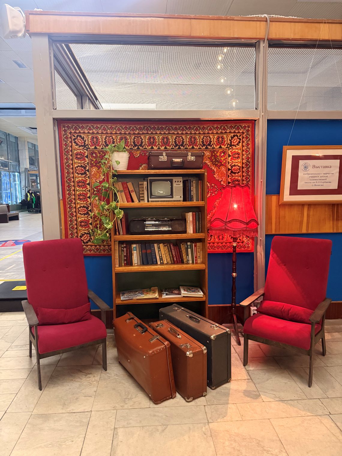 Именно такие аутентичные интерьеры и фотозоны встречают путешественников в аэропорту Вологды.