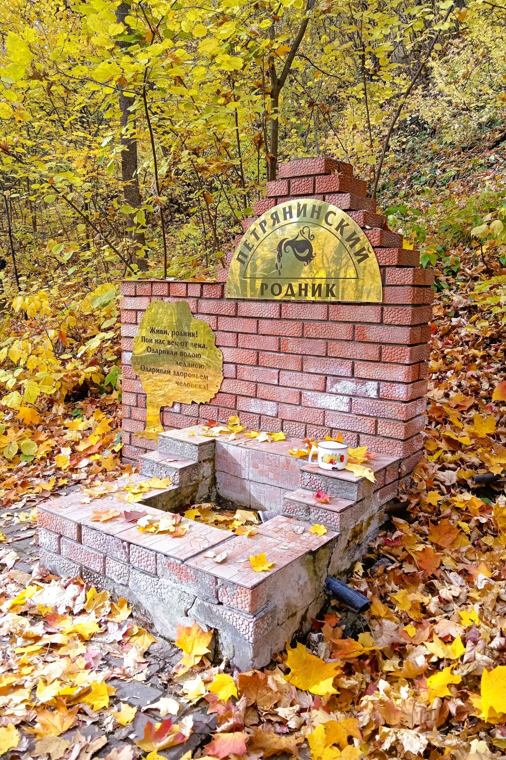 Примерно на середине пути располагается родник и крытая зона для отдыха. Здесь можно посидеть на лавочках и попить родниковой воды.