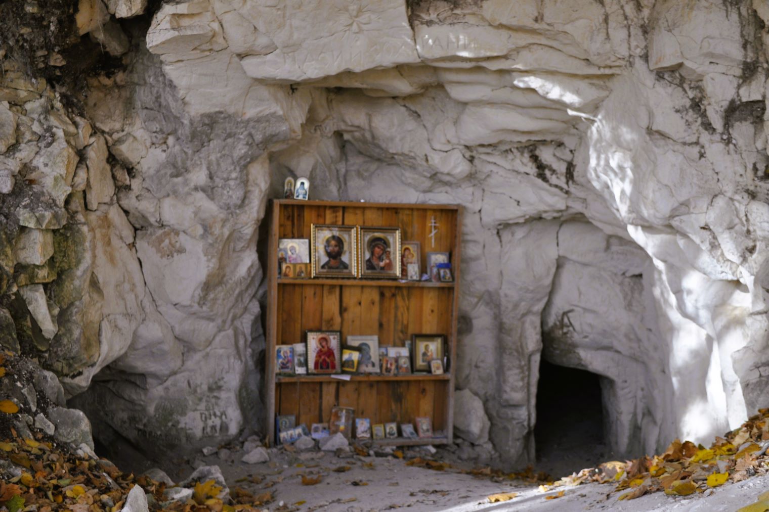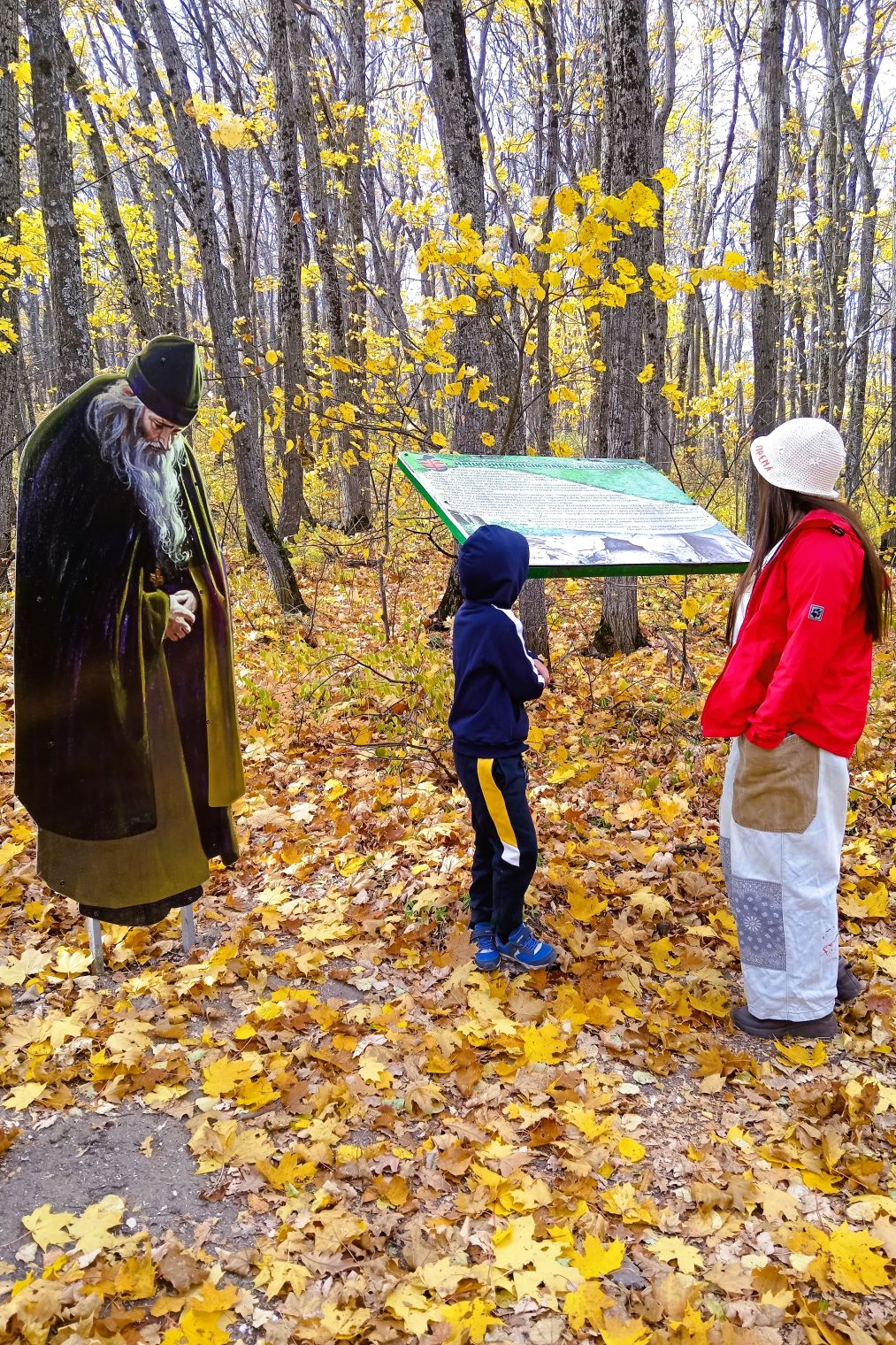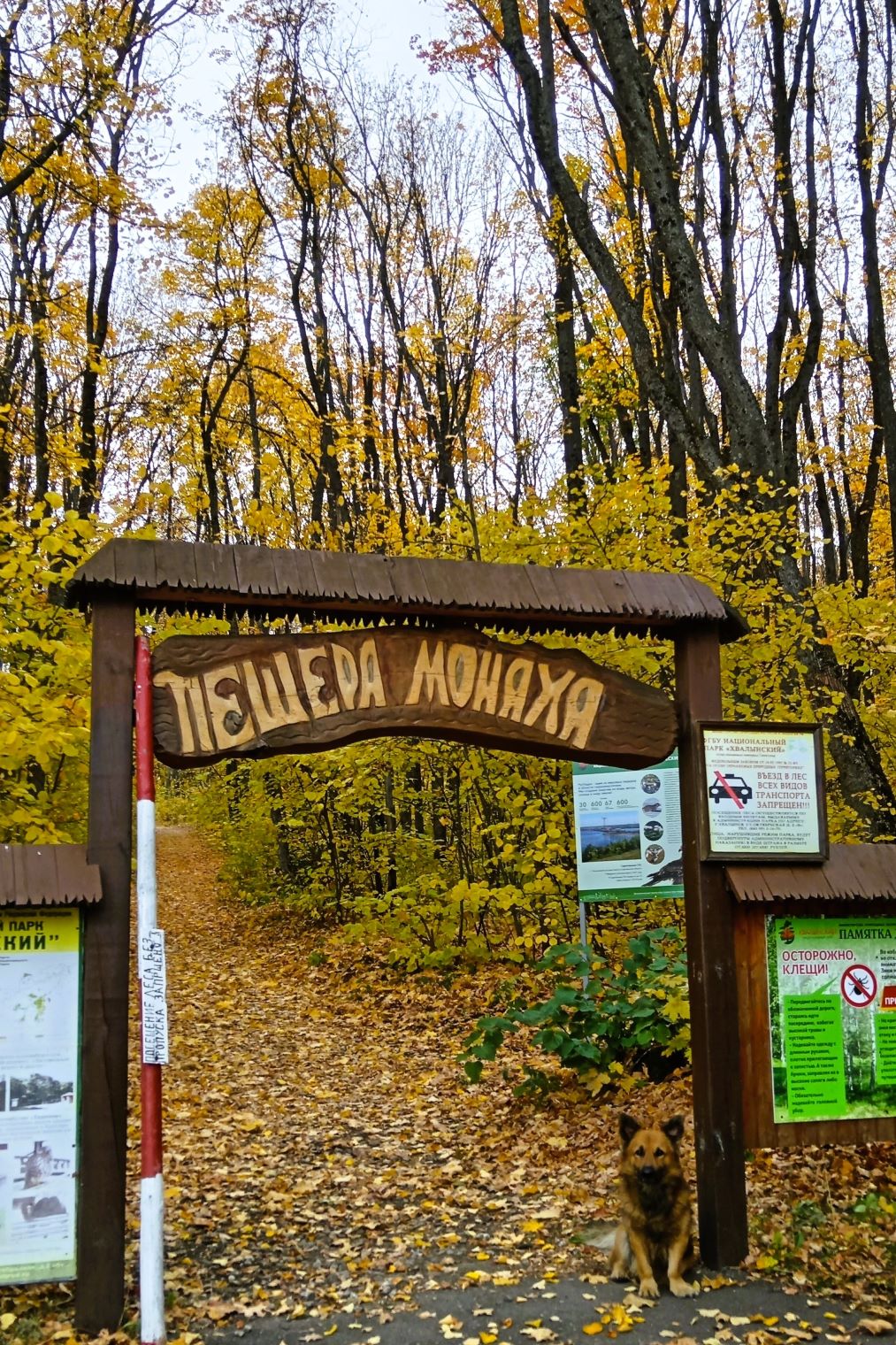 На входе встречает обаятельный и дружелюбный пес, маршрут пролегает до Меловой пещеры, где когда-то жили отшельники-староверы.