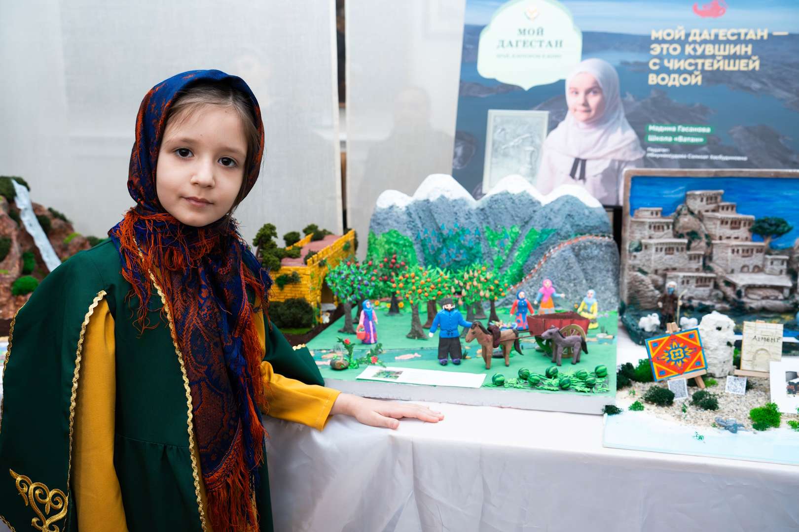 Участники выставки — победители конкурса «Дагестан мой — чарующий край», который проходил в республике в конце 2025 года в рамках инновационного образовательного проекта «Мой Дагестан. Край, в котором я живу».